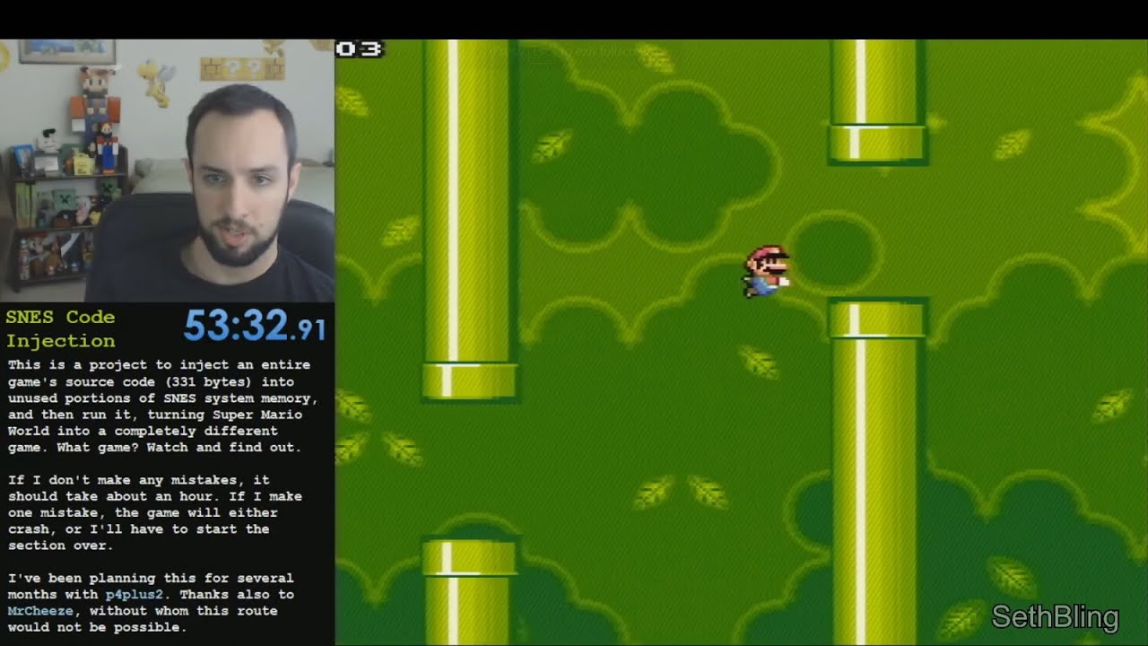 133. SethBling, SNES Code Injection -- Flappy Bird in SMW. March 28, 2016: Available here.